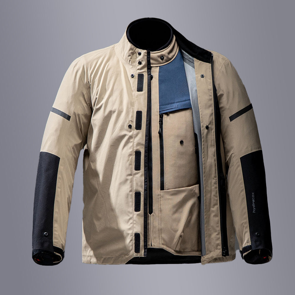 The Sand series is an icon in the REV'IT! lineup, embodying a distinctive style that has, over the years, defined travel within the motorcycle industry. That legacy continues with the Sand 5 H20 jacket. The latest iteration in the series represents an evolution rather than a revolution. The Sand 5 H2O motorcycle jacket takes on a slightly more sport-driven character compared to the previous Sand 4 generation. Matching the fast-paced nature of motorsport and the thirst for uncharted adventure, the Sand 5 H2O jacket fuses two genres into one. As well as being hydration pack prepared, the Sand 5 jacket also benefits from REV'IT!'s Over and Under waterproof liner concept with the detachable hydratex 3L waterproof liner being able to be worn either under or over the protective layer according to your personalized preference for keeping dry. A detachable and separately wearable thermal liner is also included to up the ante for warmth and comfort on those cold and rainy days.